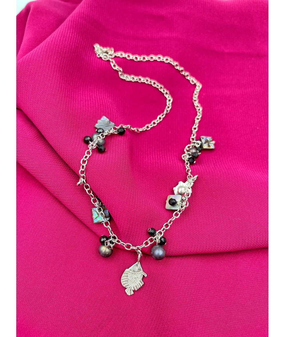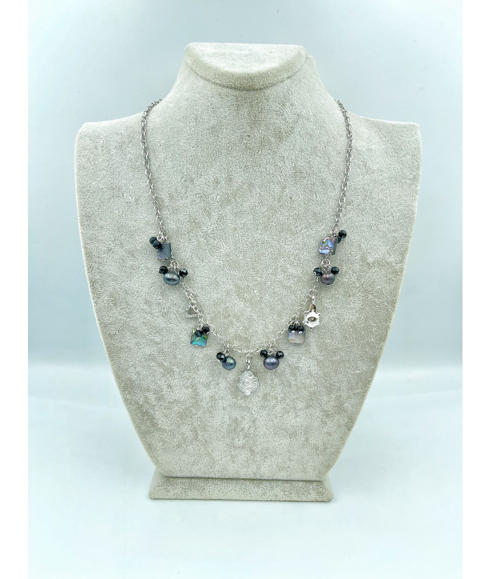 Abolon Sedef ve Siyah İnci Taşlı Gümüş Kolye-BSR0022BKY