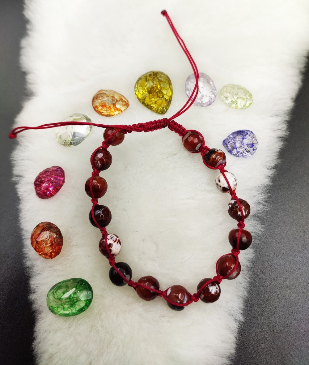 Akik Taşlı Makrome Örgü Ayarlanabilir Bileklik-BSR0044BY