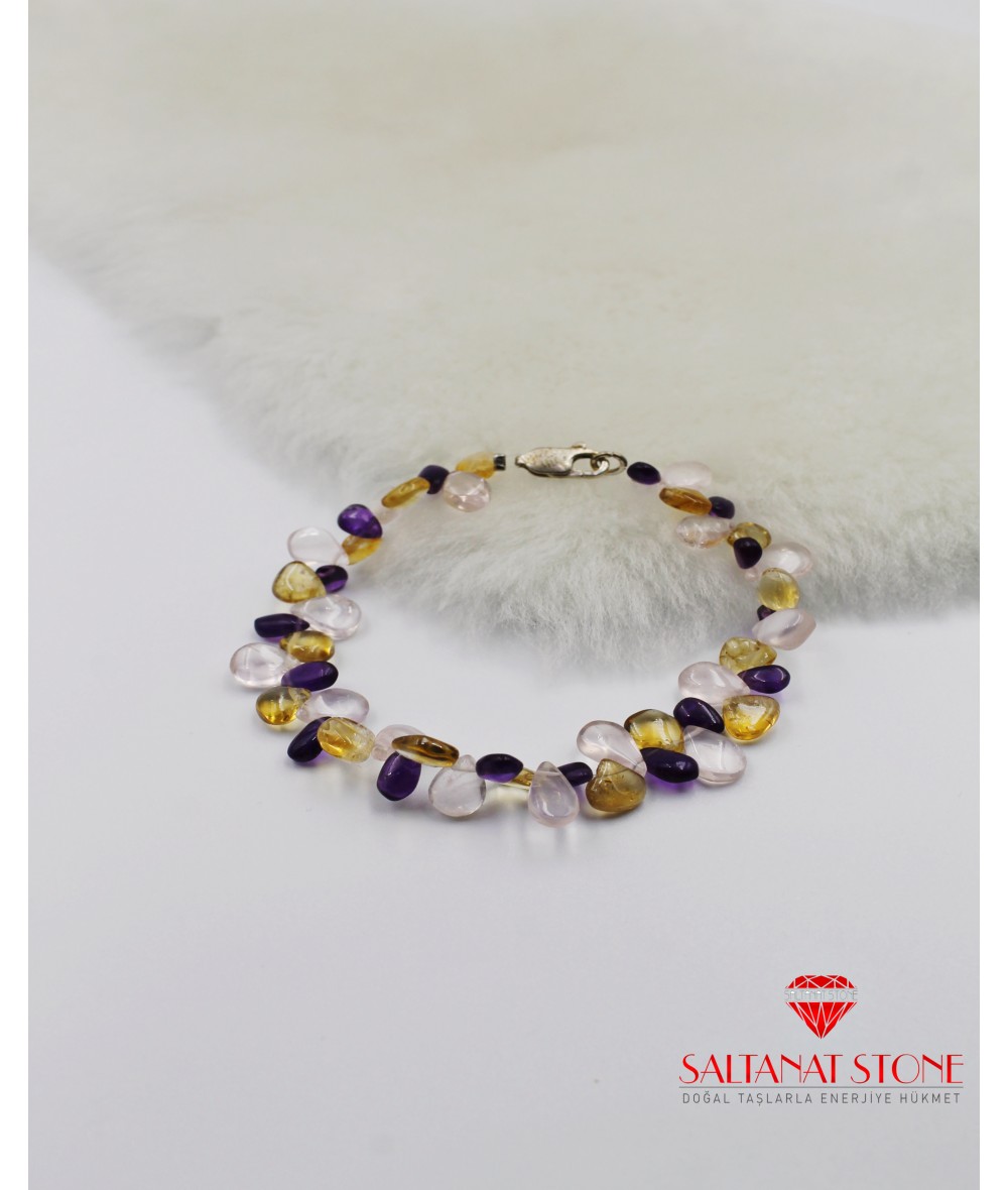 Ametist Sitrin ve Pembe Kuvars Bayan Bileklik - BSR02209BB