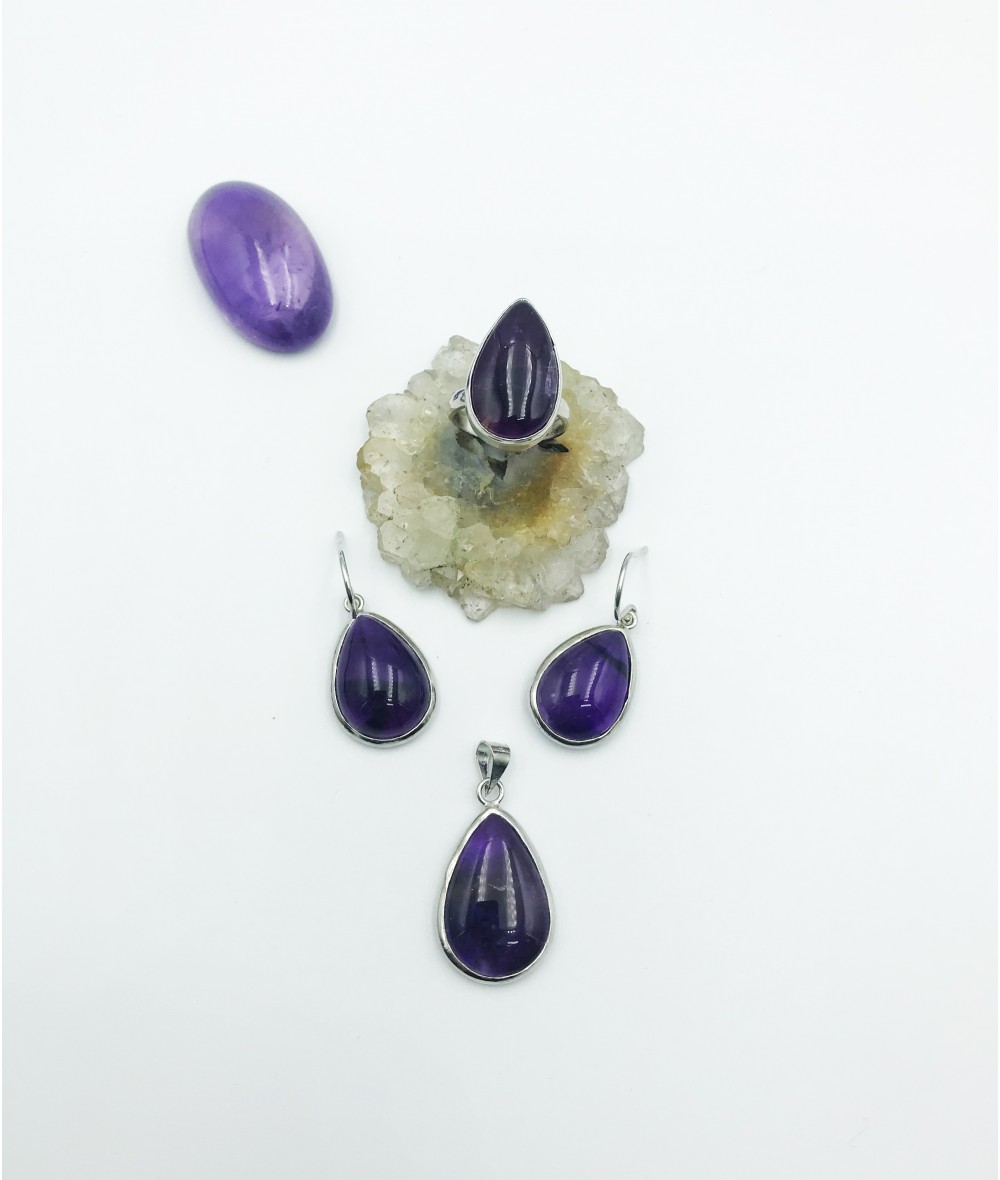 Ametist Taşlı 925 Ayar Gümüş Doğaltaş Bayan Takı Seti-BSR0031TS