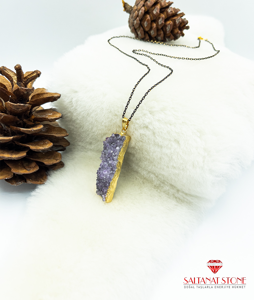 Ametist Taşlı Doğal Parça Kadın Kolye BSR01568KK