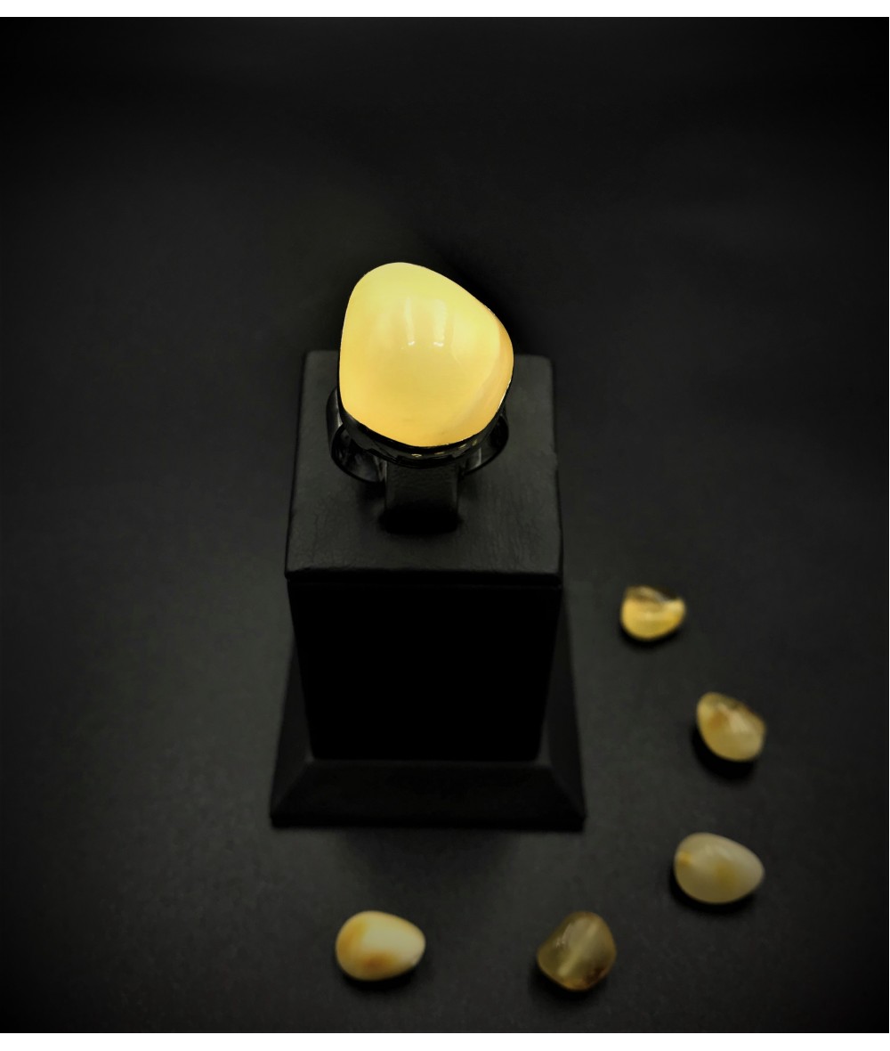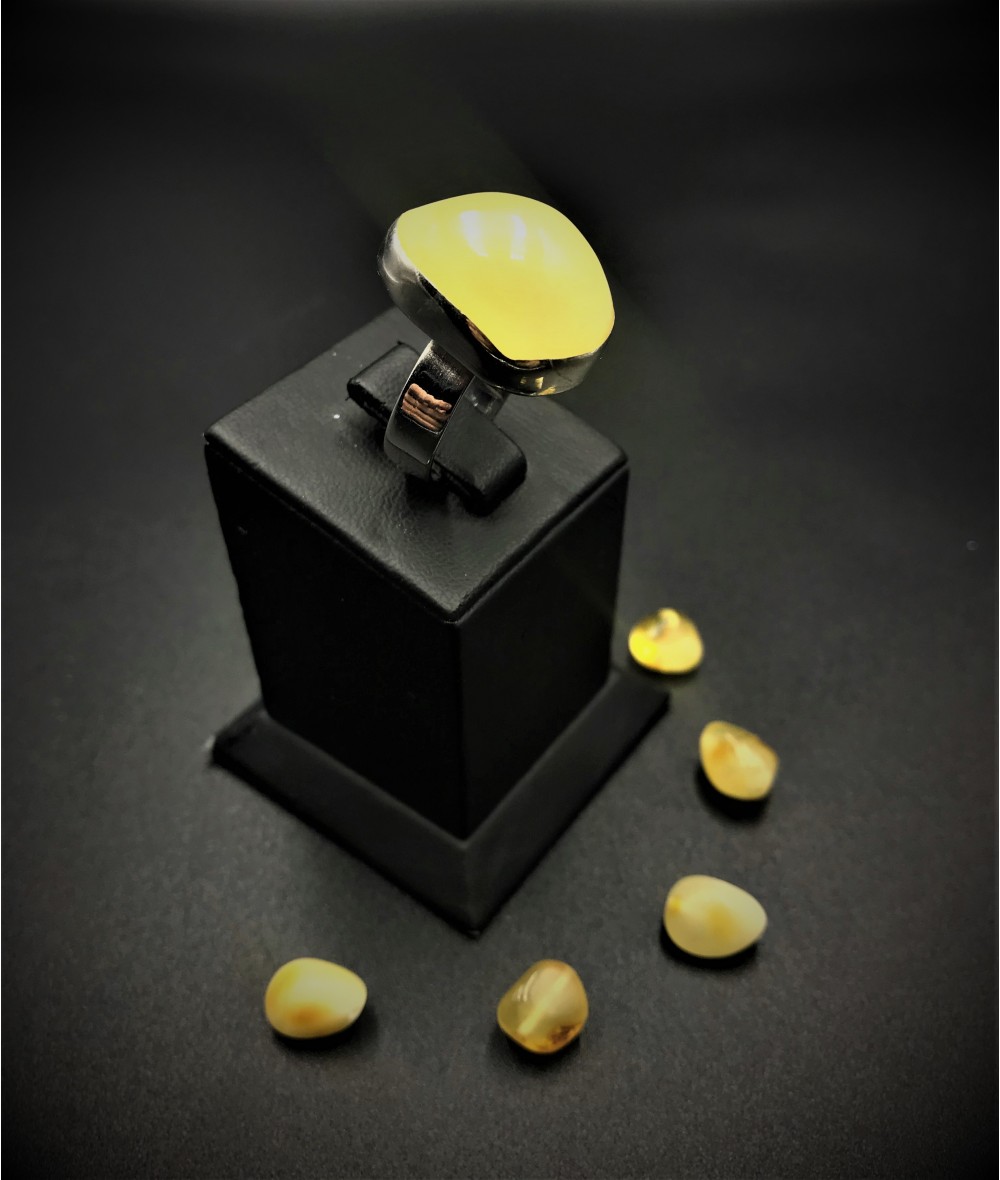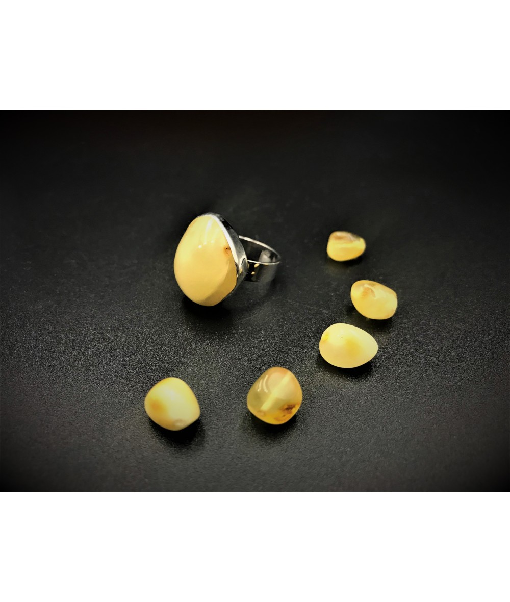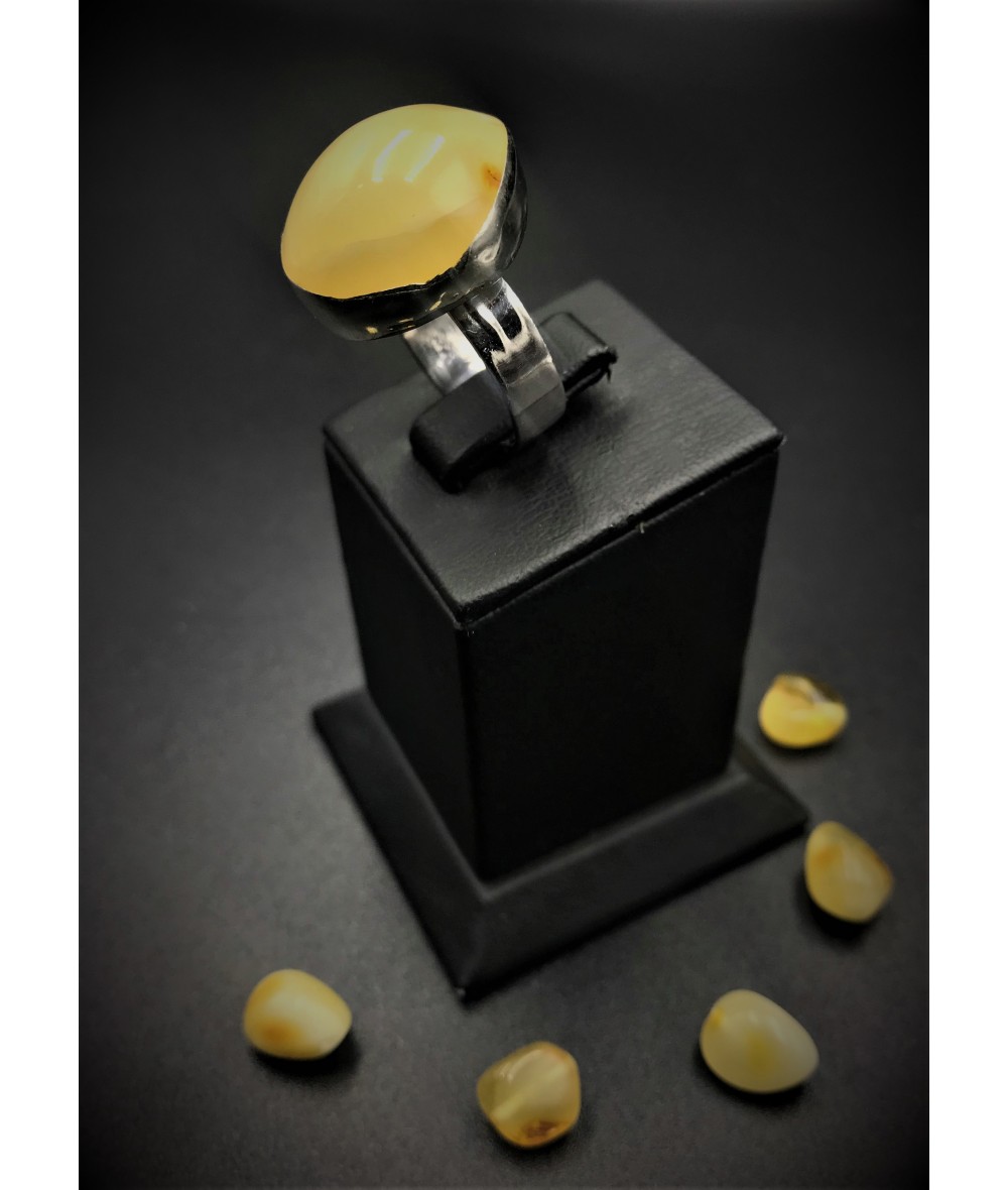 Damla Kehribar Taşlı 925 Ayar Gümüş Elişi Bayan Yüzük - BSR00324KY