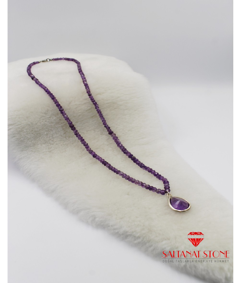 Gümüş İşleme Ametist Bayan Kolye - BSR02056BK