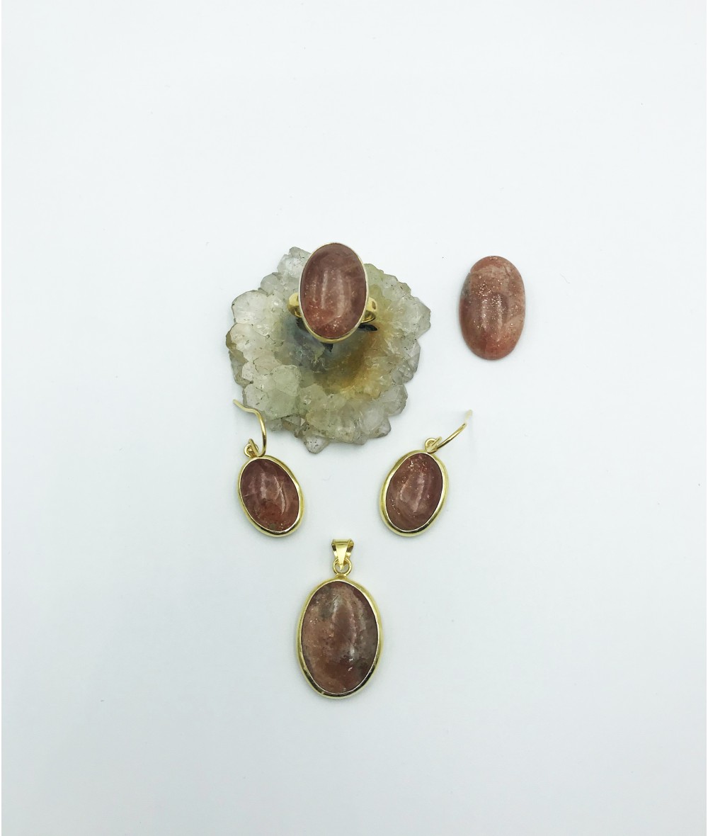 Güneş Taşlı 925 Ayar Gümüş Doğaltaş Bayan Takı Seti-BSR0043TS