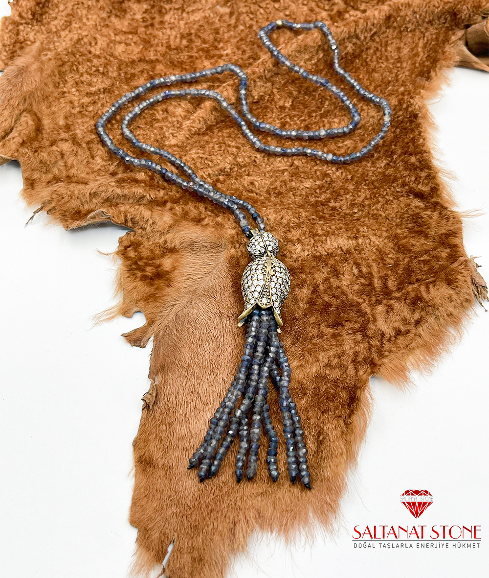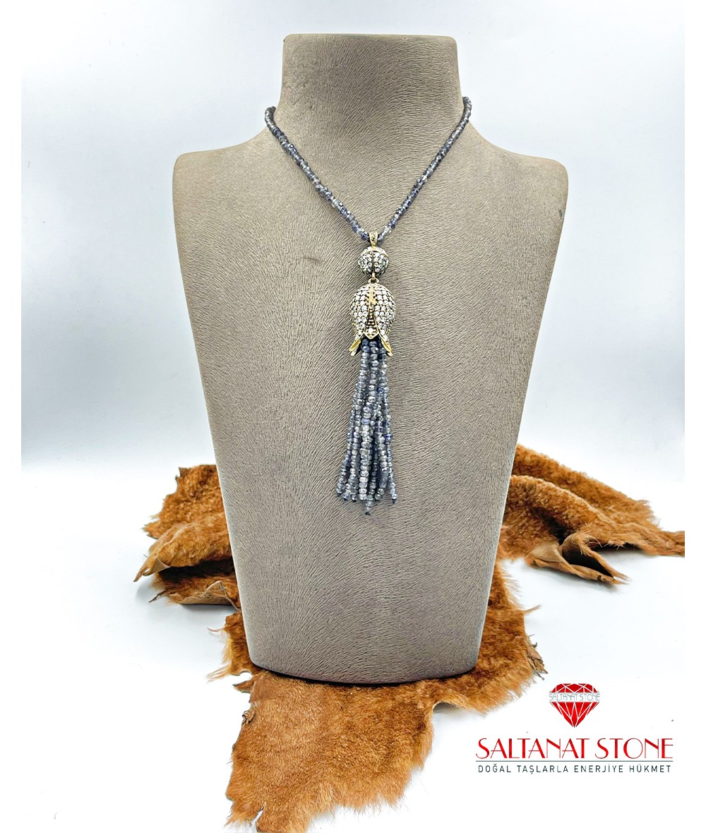 İyolit Taşlı Lale Topuzlu Püskül Model Kadın Kolye BSR01522KK
