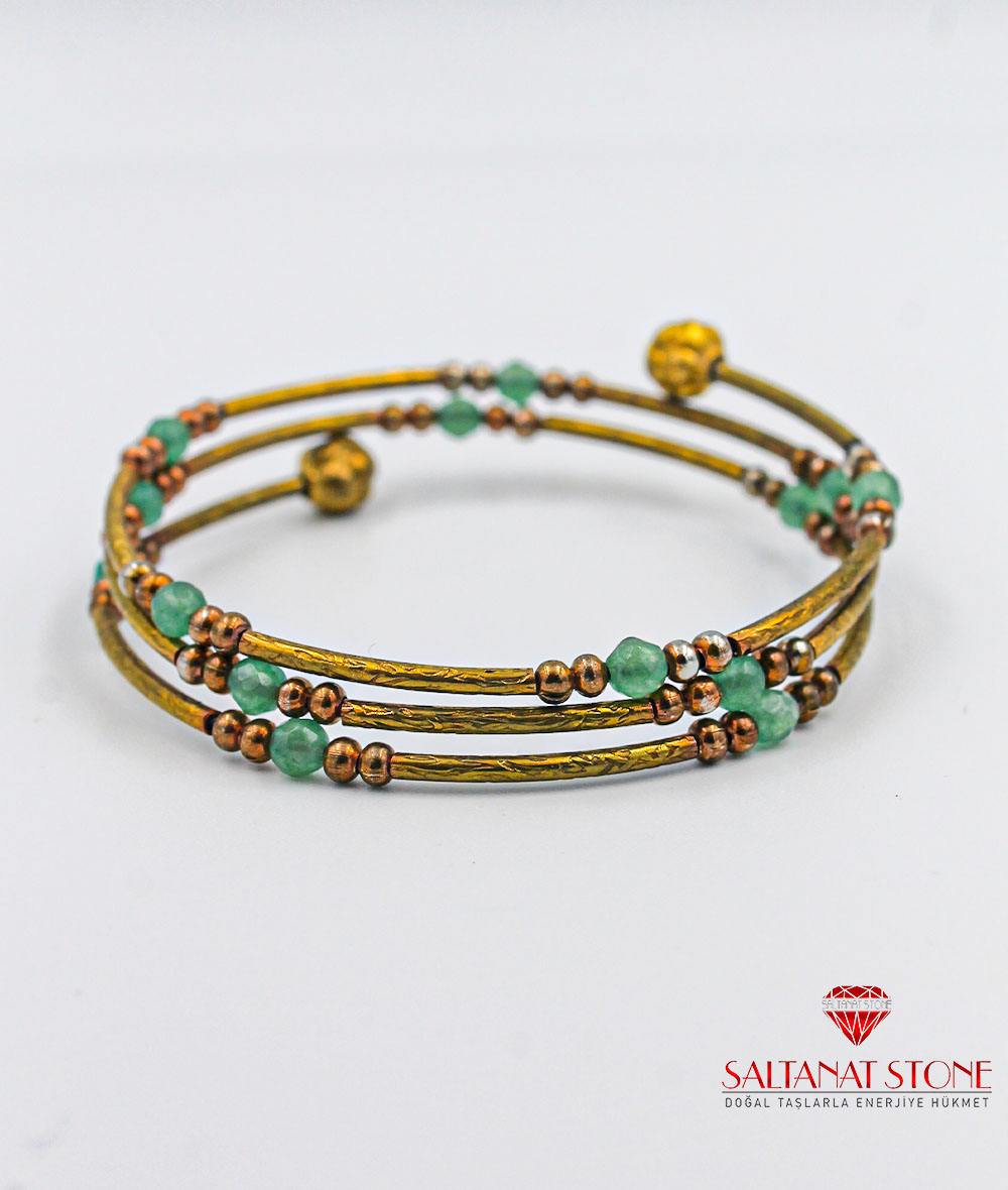 Jade Taşlı Altın Kaplama Bronz Bayan Bileklik - BSV01076BB