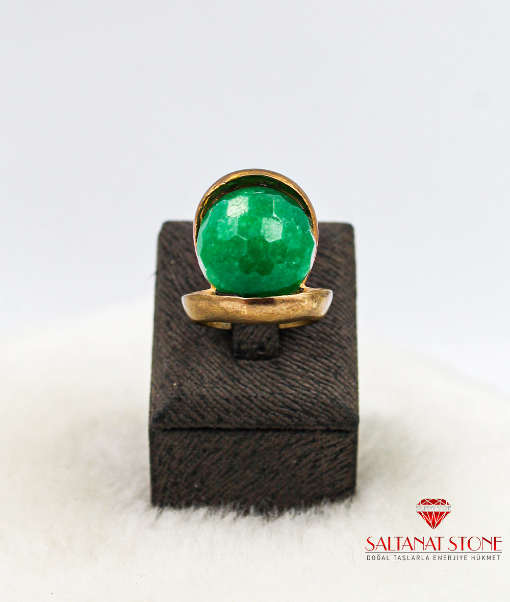 Jade Taşlı Altın Kaplama Bronz Bayan Yüzük - BSV01080BY