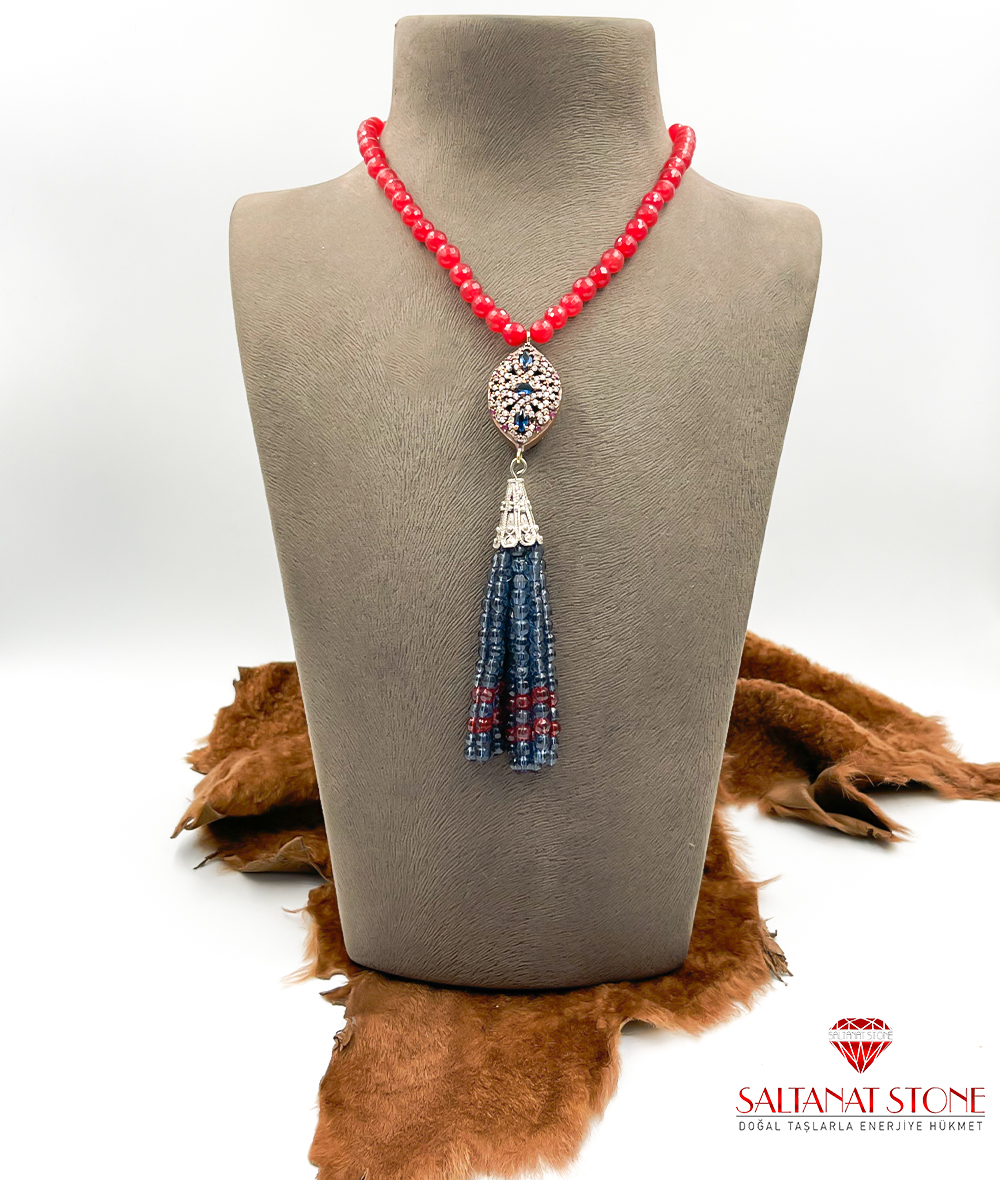 Jade Taşlı Lale Topuzlu Püskül Model Kadın Kolye BSR01513KK