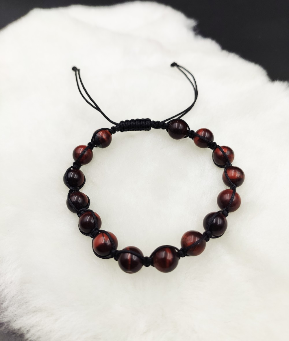 Kırmızı Kaplangözü Taşlı Makrome Örgü Ayarlanabilir Bileklik-BSR0064BY