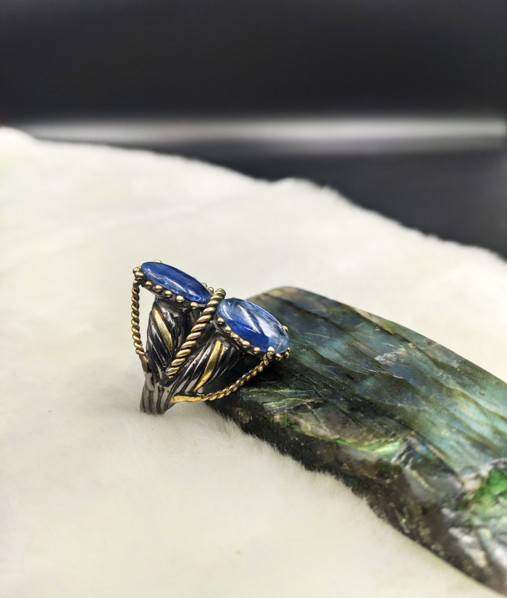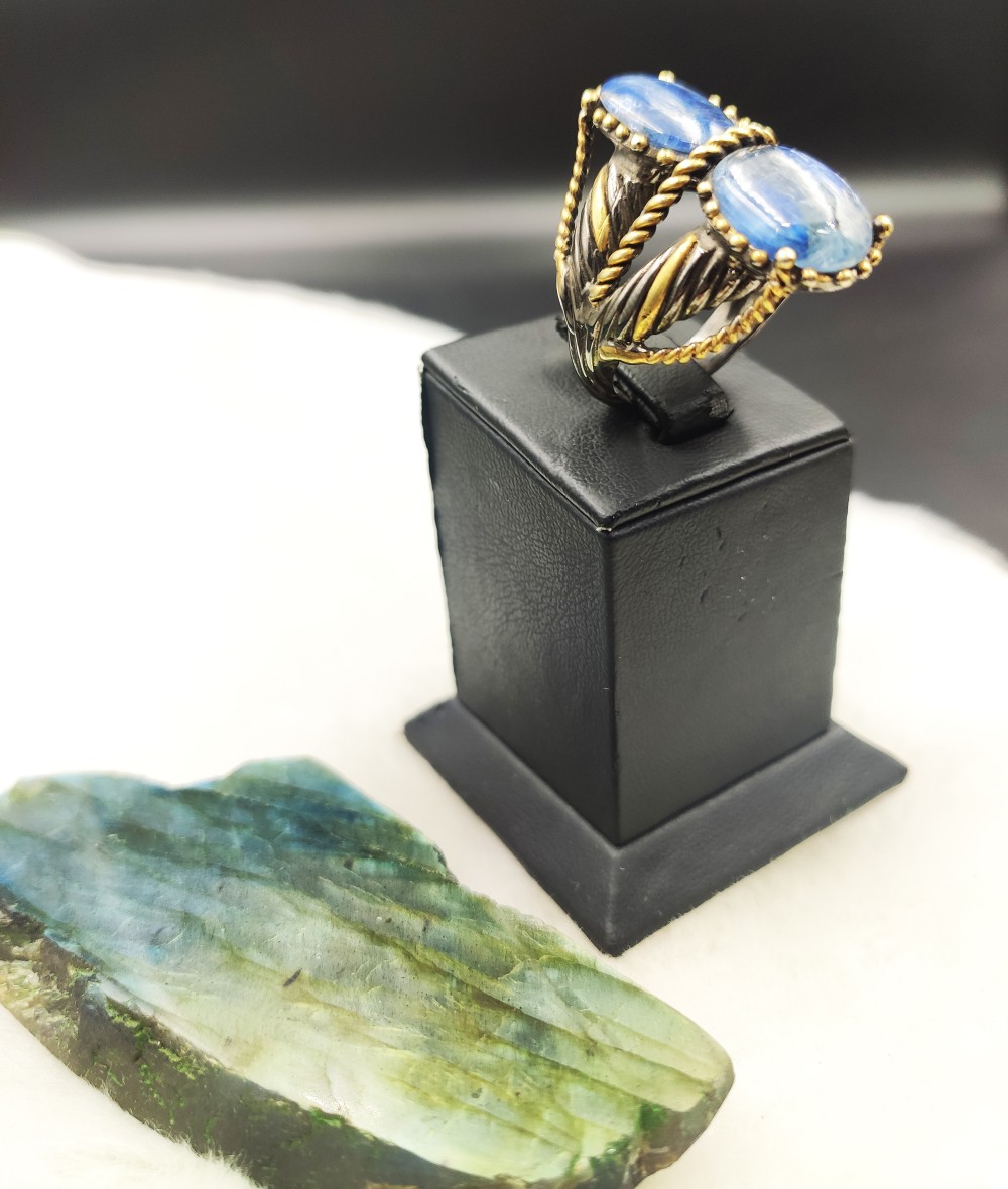 Kyanit Taşlı Özel Tasarım Bayan Gümüş Yüzük-BSR0035K-Y