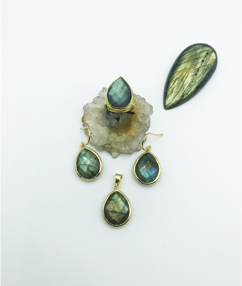 Labradorit Taşlı 925 Ayar Gümüş Doğaltaş Bayan Takı Seti-BSR0039TS