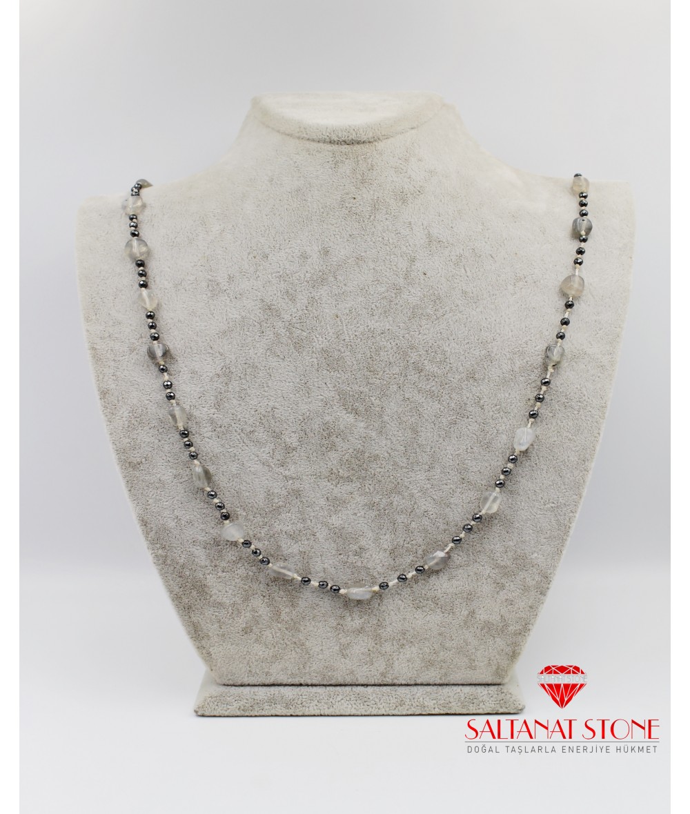 Labradorit ve Lav Taşı Bayan Kolye - BSR02120BK