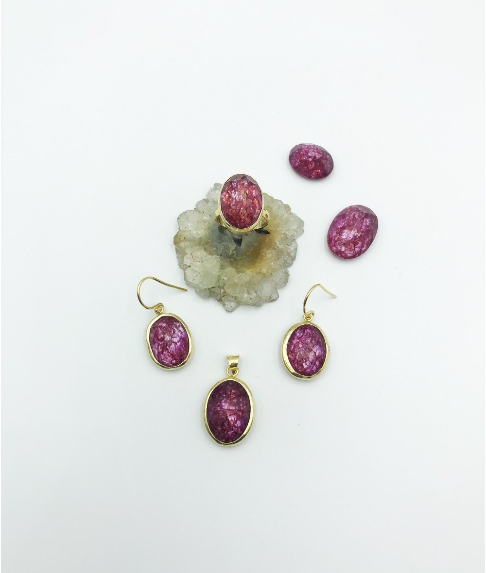 Necef Taşlı 925 Ayar Gümüş Doğaltaş Bayan Takı Seti-BSR0035TS