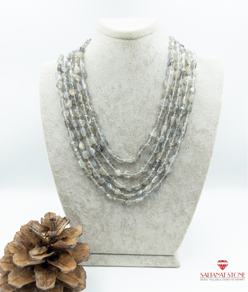 Orjinal Labradorit Free ve Kapşon Kesim 5li Kolye-BSR01561KK