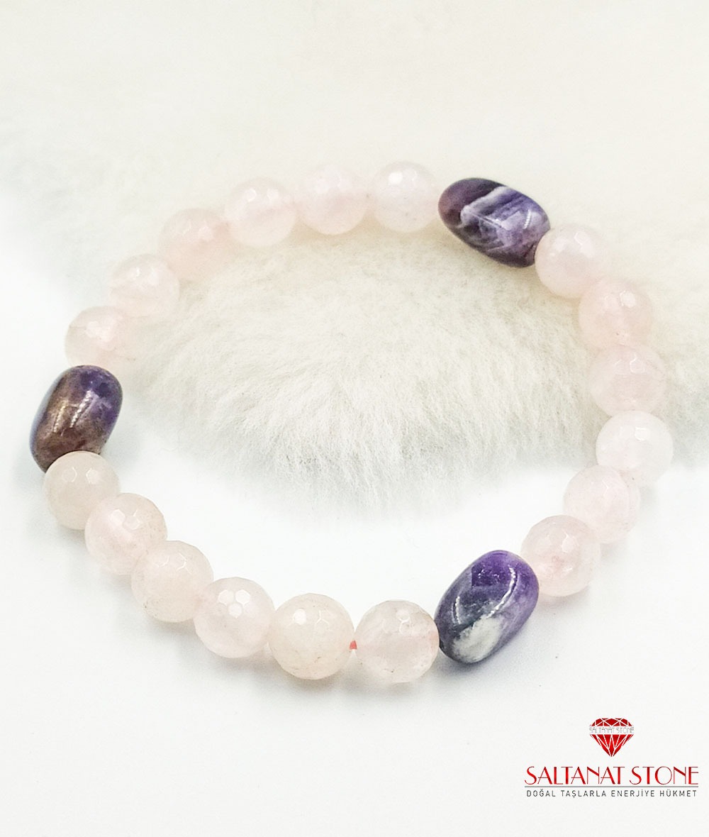 Pembe Kuvars ve Ametist Taşlı Bayan Bileklik - BSV01844BB