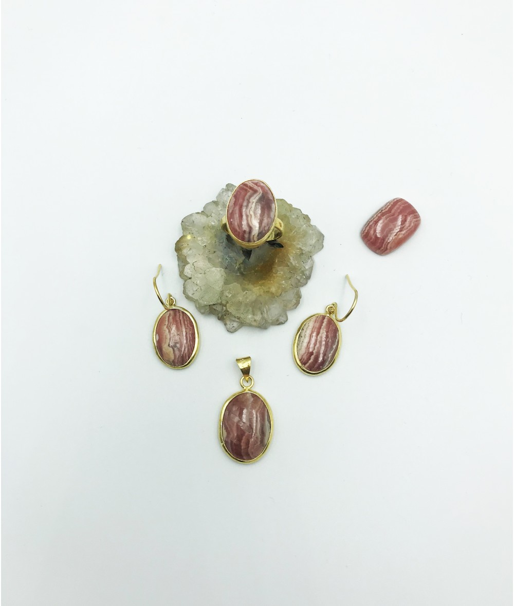 Rodokrozit Taşlı 925 Ayar Gümüş Doğaltaş Bayan Takı Seti-BSR0041TS