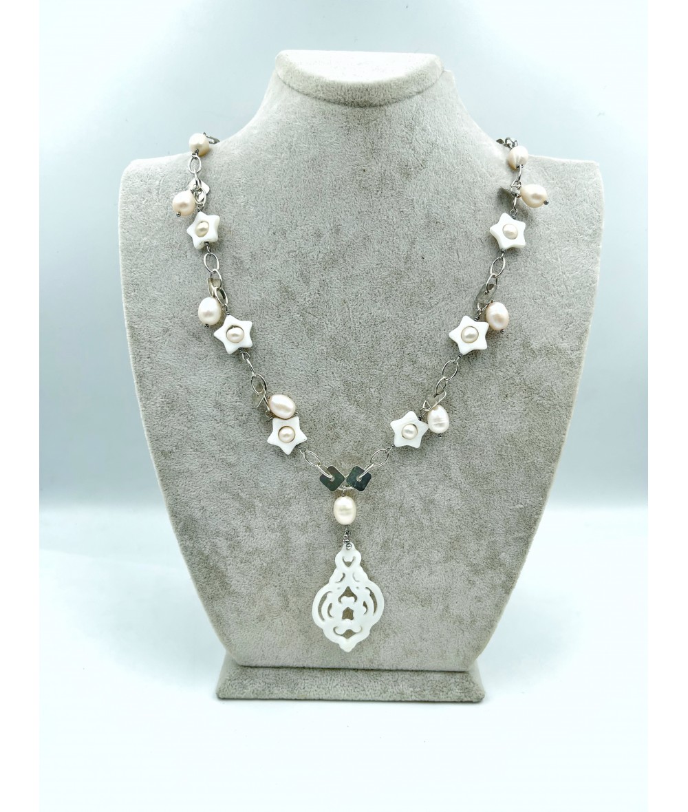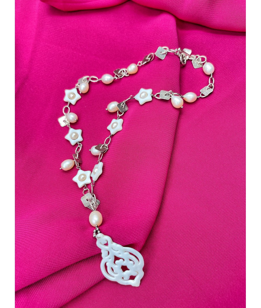 Sedef ve İnci Taşlı Gümüş Kolye-BSR0021BKY