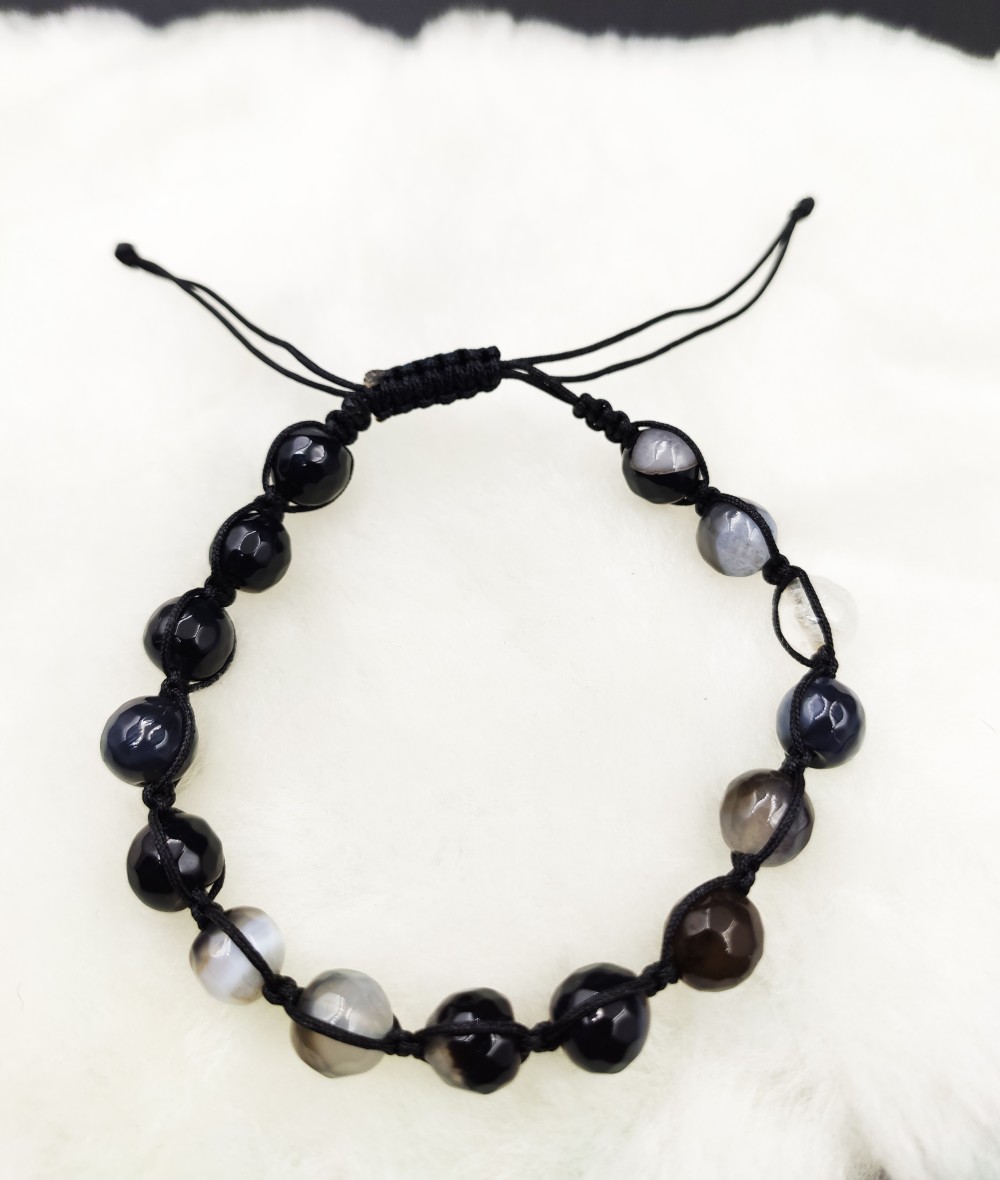 Siyah Akik Taşlı Makrome Örgü Ayarlanabilir Bileklik-BSR0048BY