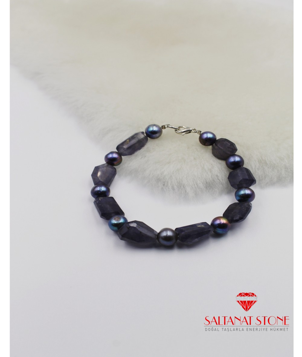 Siyah İnci ve İyolit Taşlı Bayan Bileklik - BSR02055BB
