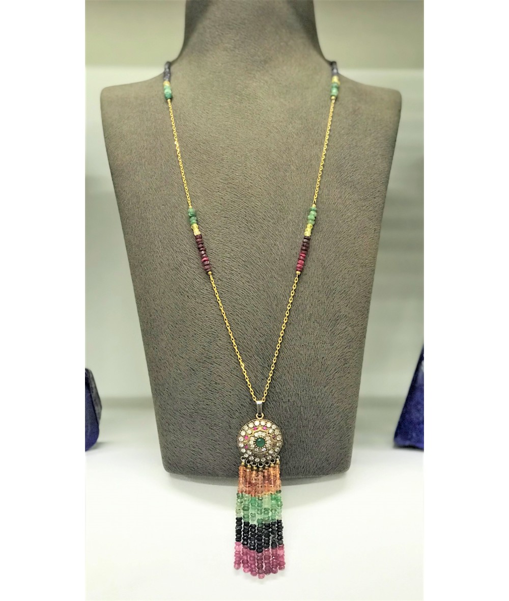 Yakut Zümrüt ve safir Taşlı Otantik Gümüşlü Bayan Kolye - RY0071