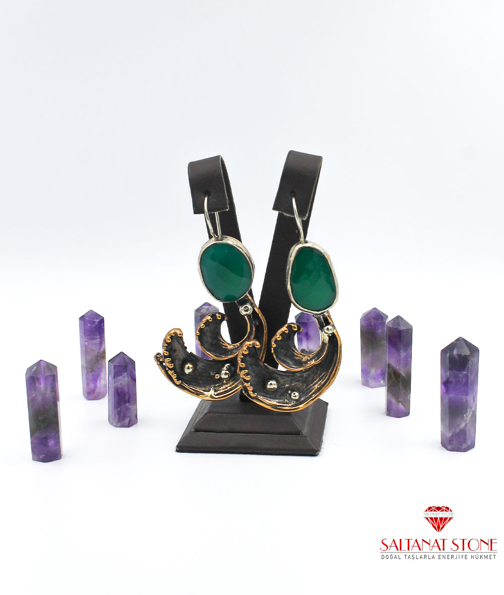 Yeşil Akik Taşlı Bayan Küpe - BSV01511BK
