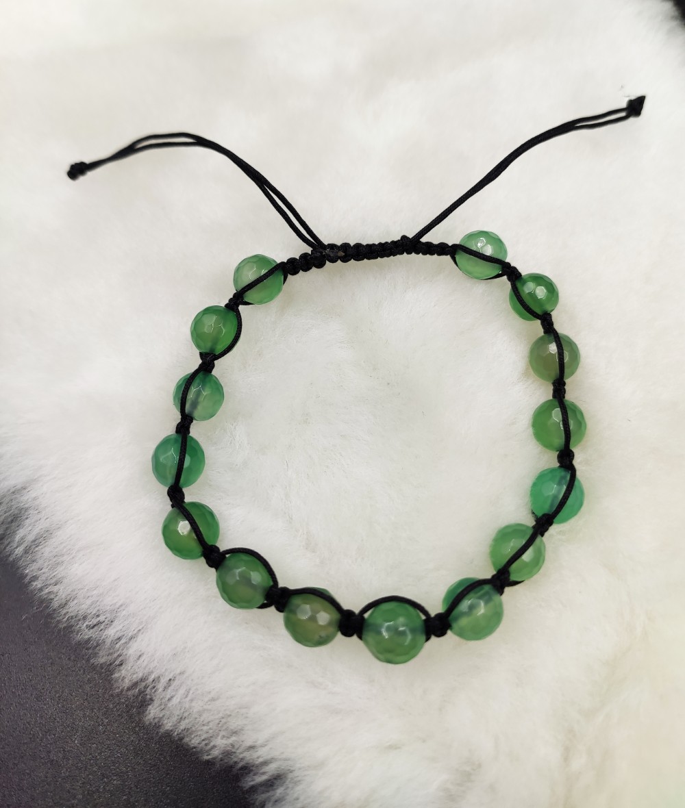 Yeşil Akik Taşlı Makrome Örgü Ayarlanabilir Bileklik-BSR0051BY