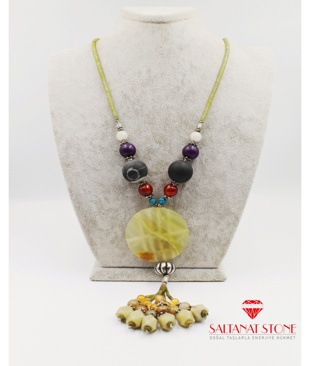 Yeşim Taşlı Bayan Kolye - BSR02231BK